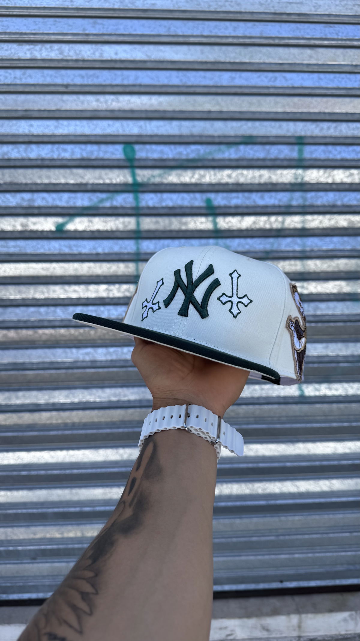 Gorra NY Cerrada Plana Importada Bordada | BLANCO c/ VERDE