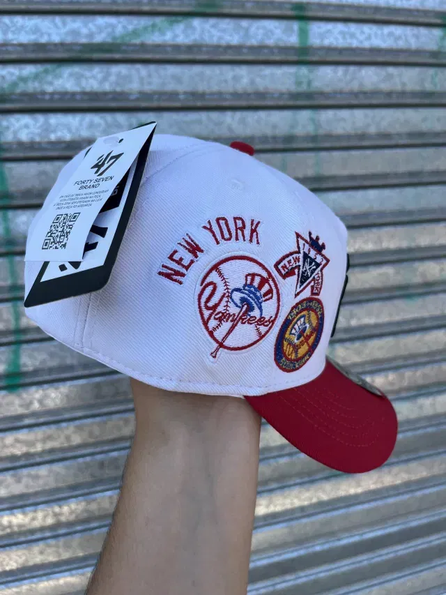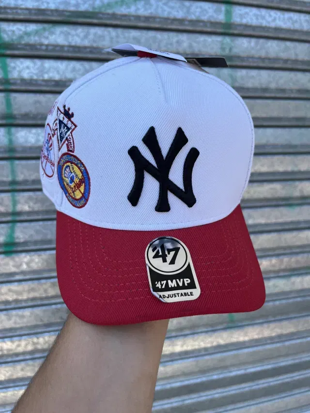 Gorra NY Regulable Curva | BLANCO c/ NEGRO y ROJO