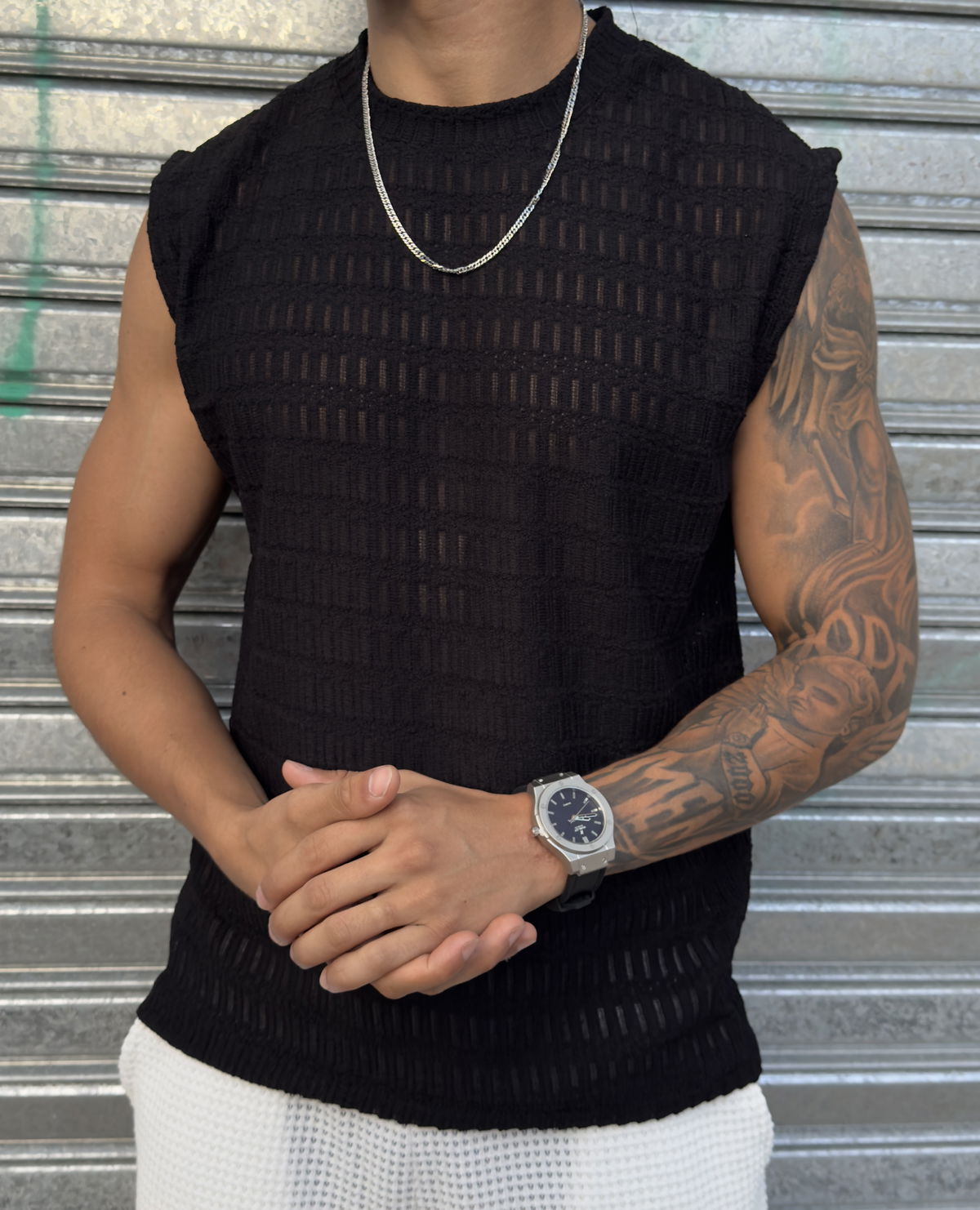 Textura, comodidad y estilo en una sola prenda. La Musculosa Tejida Oversize es perfecta para un look relajado pero con mucha presencia, ideal para los días de calor y las salidas con onda.