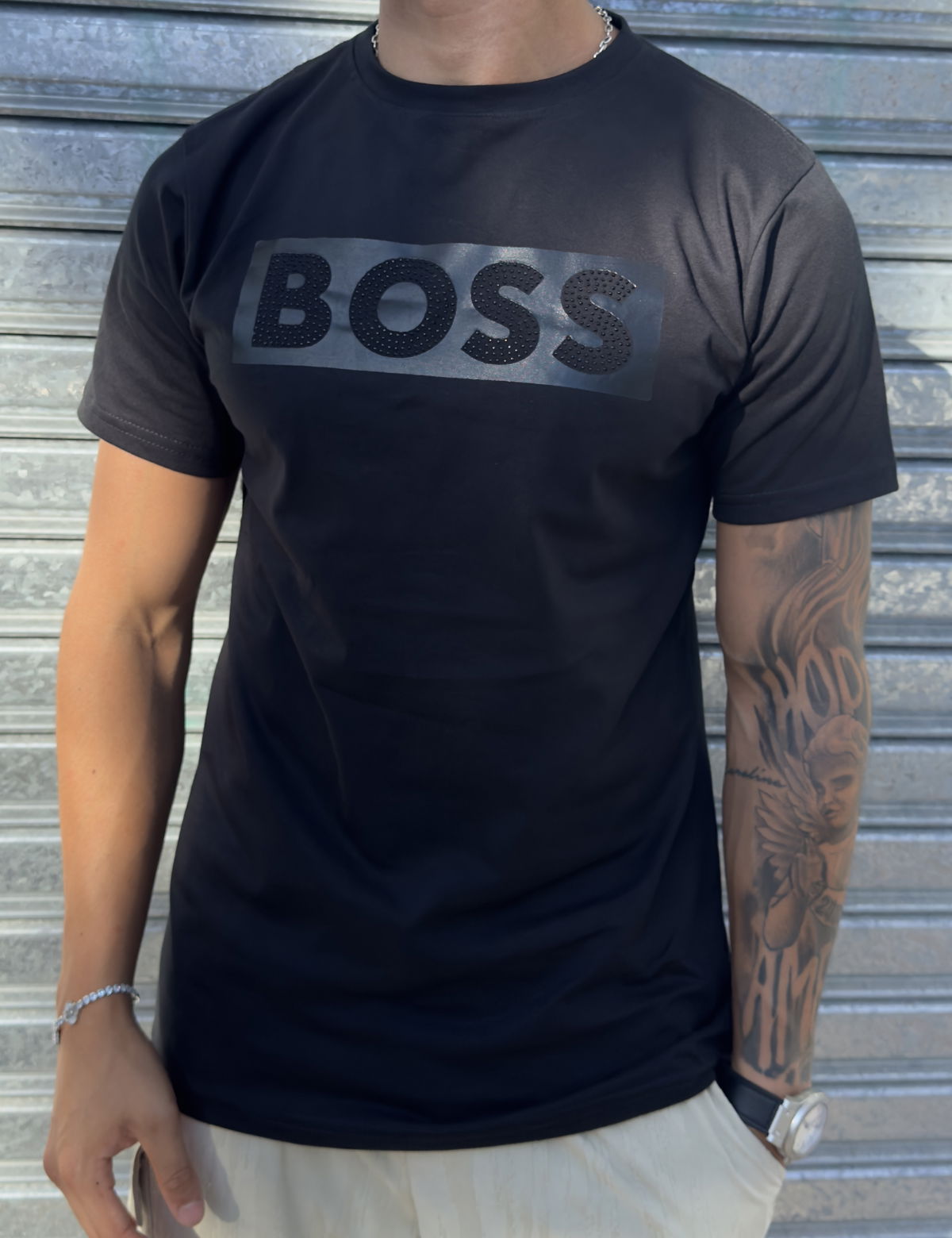 Elegancia y actitud en una sola prenda. La Remera Boss con brillo levanta cualquier outfit, ideal para salir o marcar presencia sin decir una palabra.