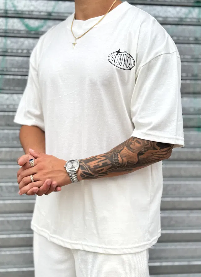 🔥 La remera oversize Sumwon es todo lo que necesitás para un look de 10. Con su corte amplio y diseño único, es ideal para quienes buscan algo diferente y auténtico.